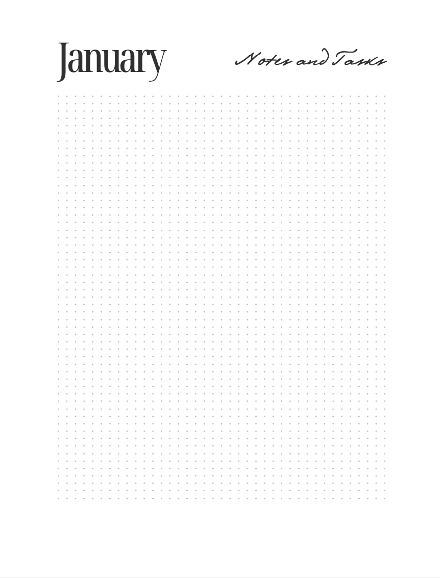 2026 Monthly Planner with Notes pages